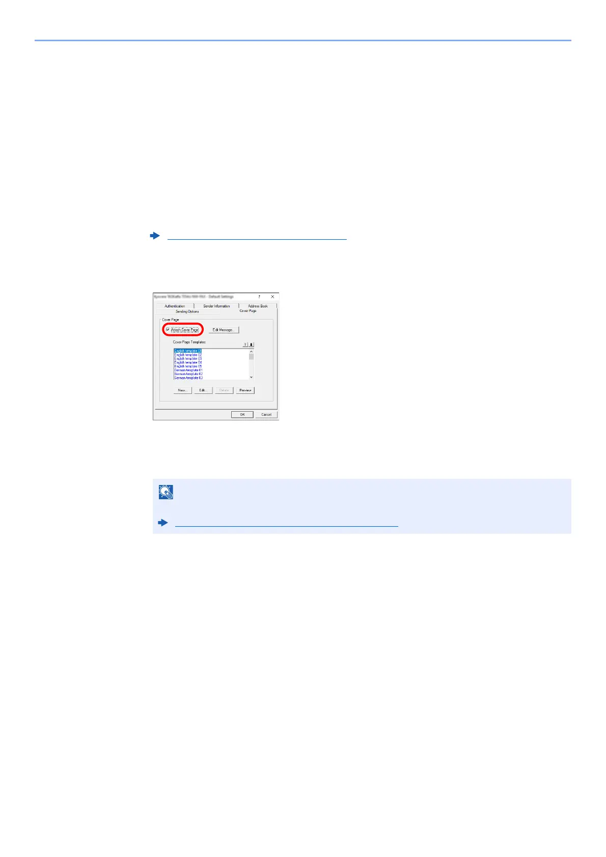 Click on the [Cover Page] tab and place a check in the [Attach Cover Page] checkbox.