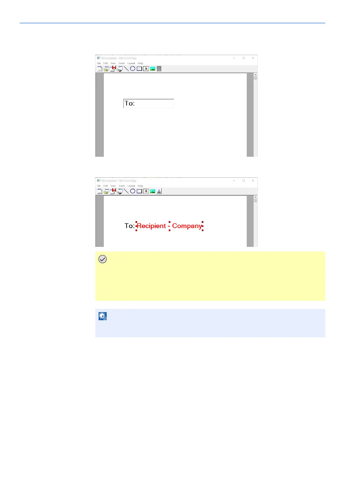 From the Menu bar's [Insert] menu, select the field box to be positioned.