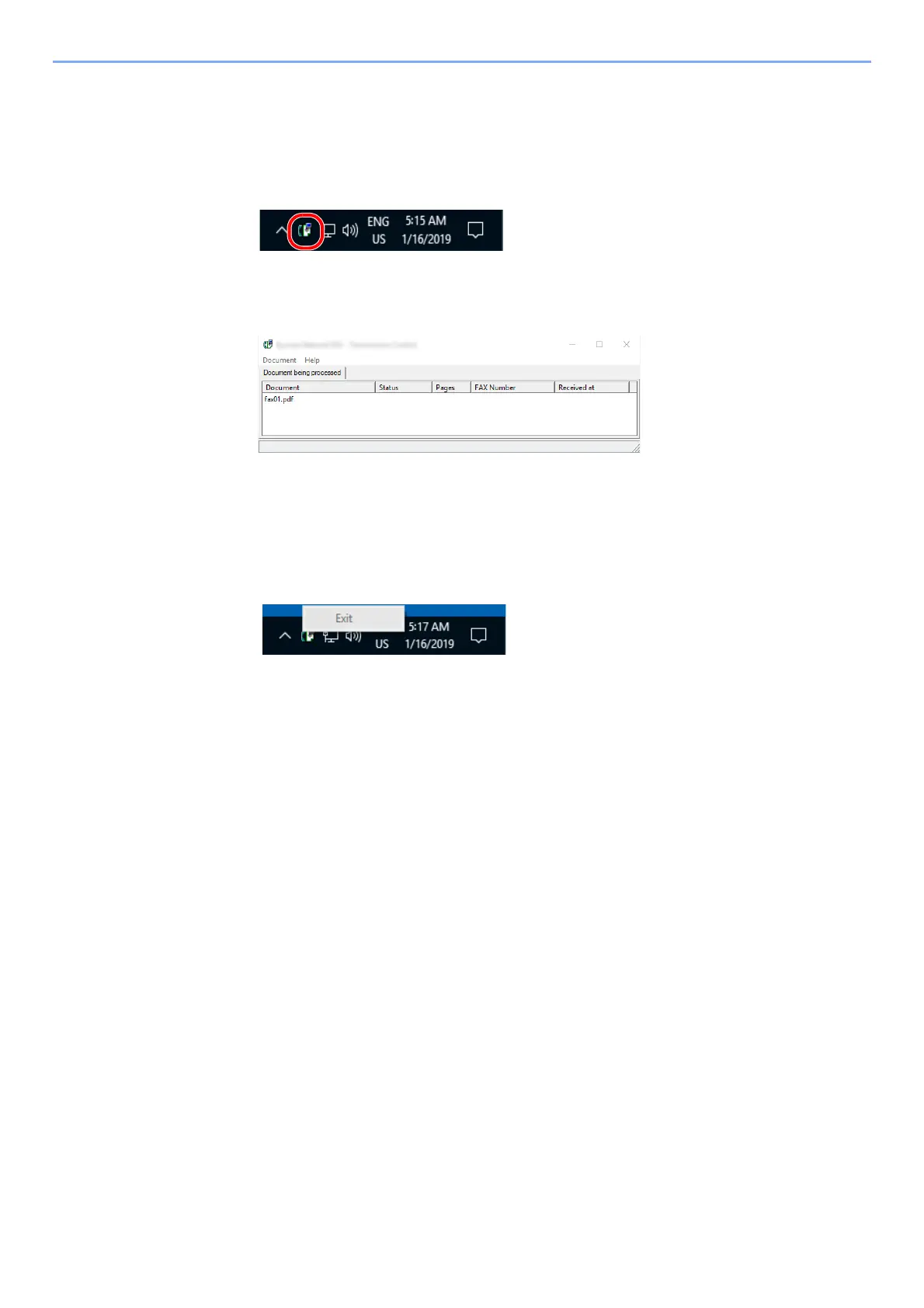 Once a fax transmission starts being processed, a Transmission Control icon will be displayed in the Windows Task Bar.