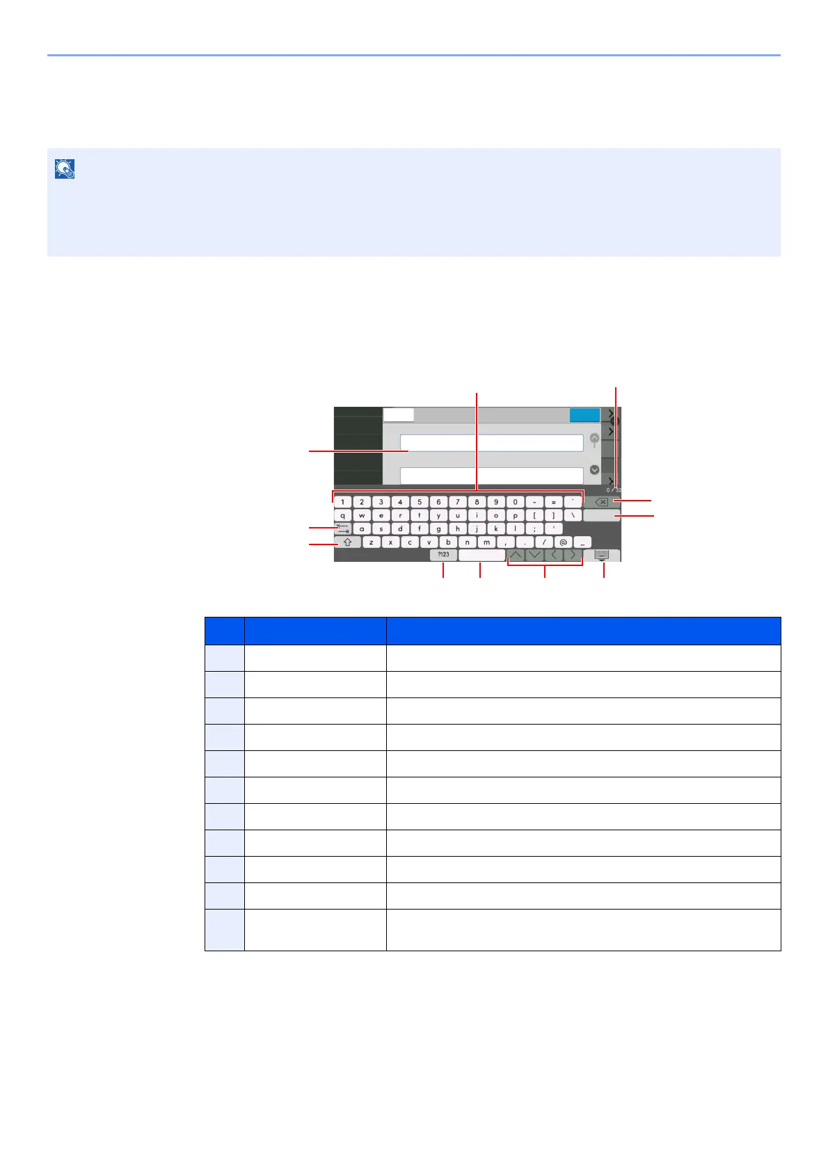 9 Enter key Select to finalize entry and return to the screen before the entry.
