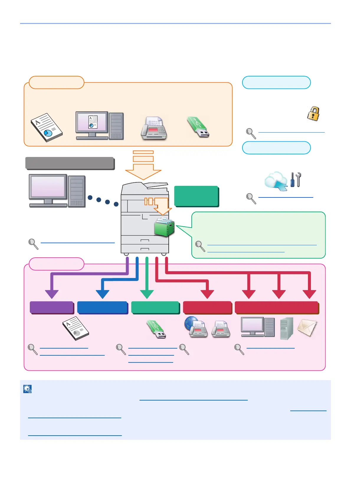 • To learn how to load paper, place originals, set up shared folders, and add addresses to the address book, refer to