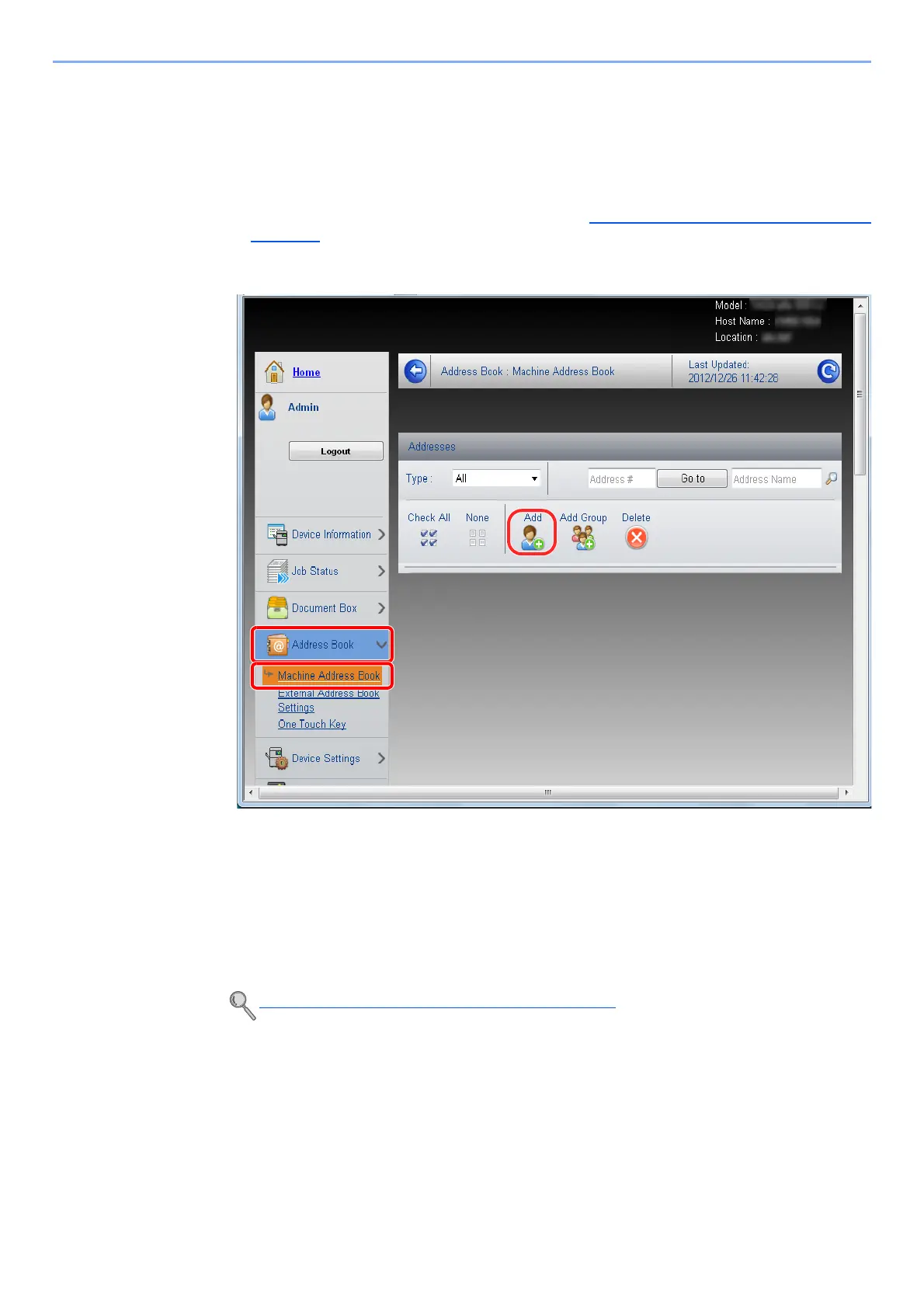 You can register destinations to the machine's Address Book, from Embedded Web Server RX.