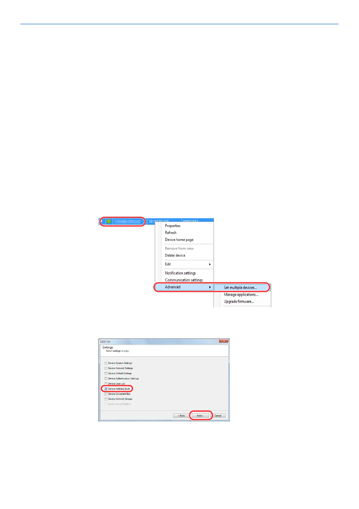 1 Right-click on the model name from which you want to back up the Address Book, and