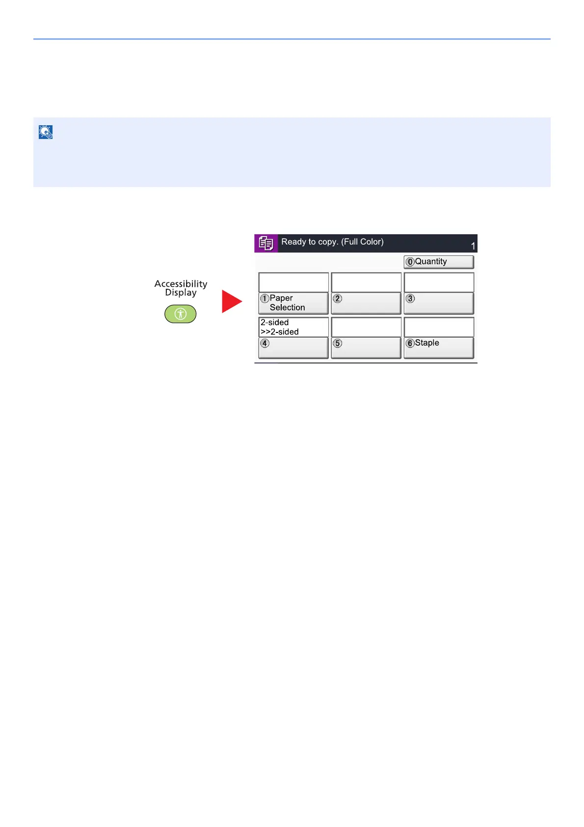 While using the Copy or Send functions, press the [Accessibility Display] key.