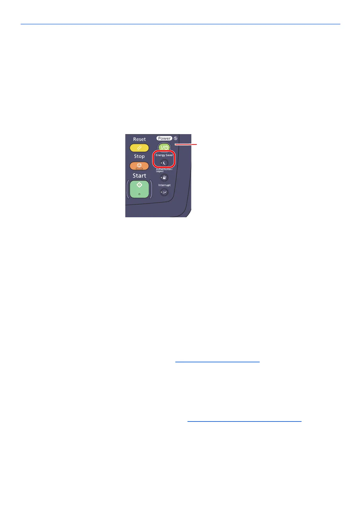 To activate Low Power Mode, press the [Energy Saver] key. Touch panel and all indicators on the operation panel will