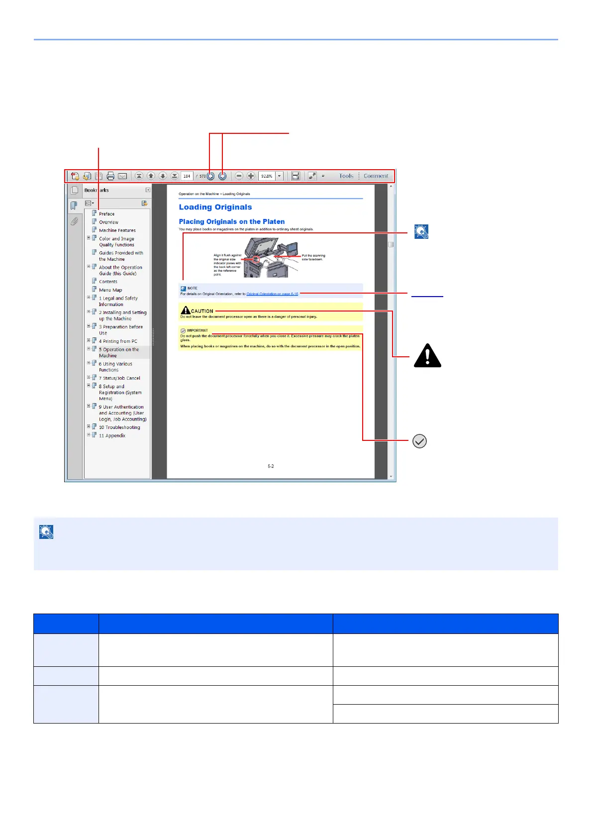 The items that appear in Adobe Reader vary depending on how it is used. If the Table of Contents or tools do not