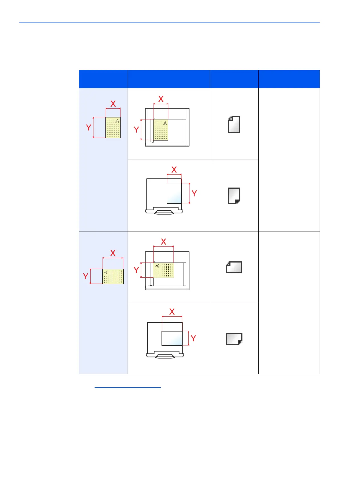 addition, the following icons are used to indicate original and paper placement orientations on the touch panel.