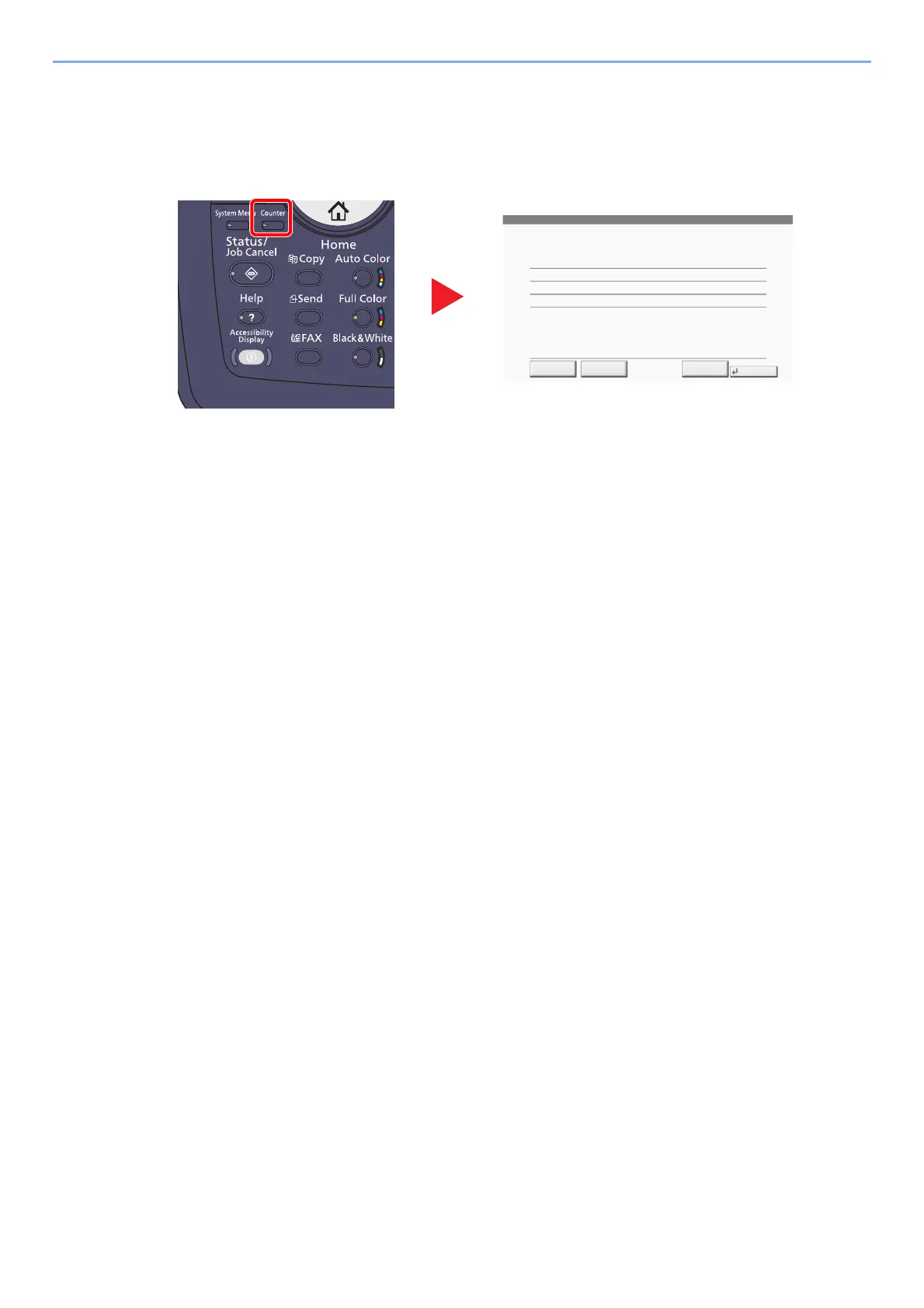 Press the [Counter] key to check the number of sheets printed and scanned.
