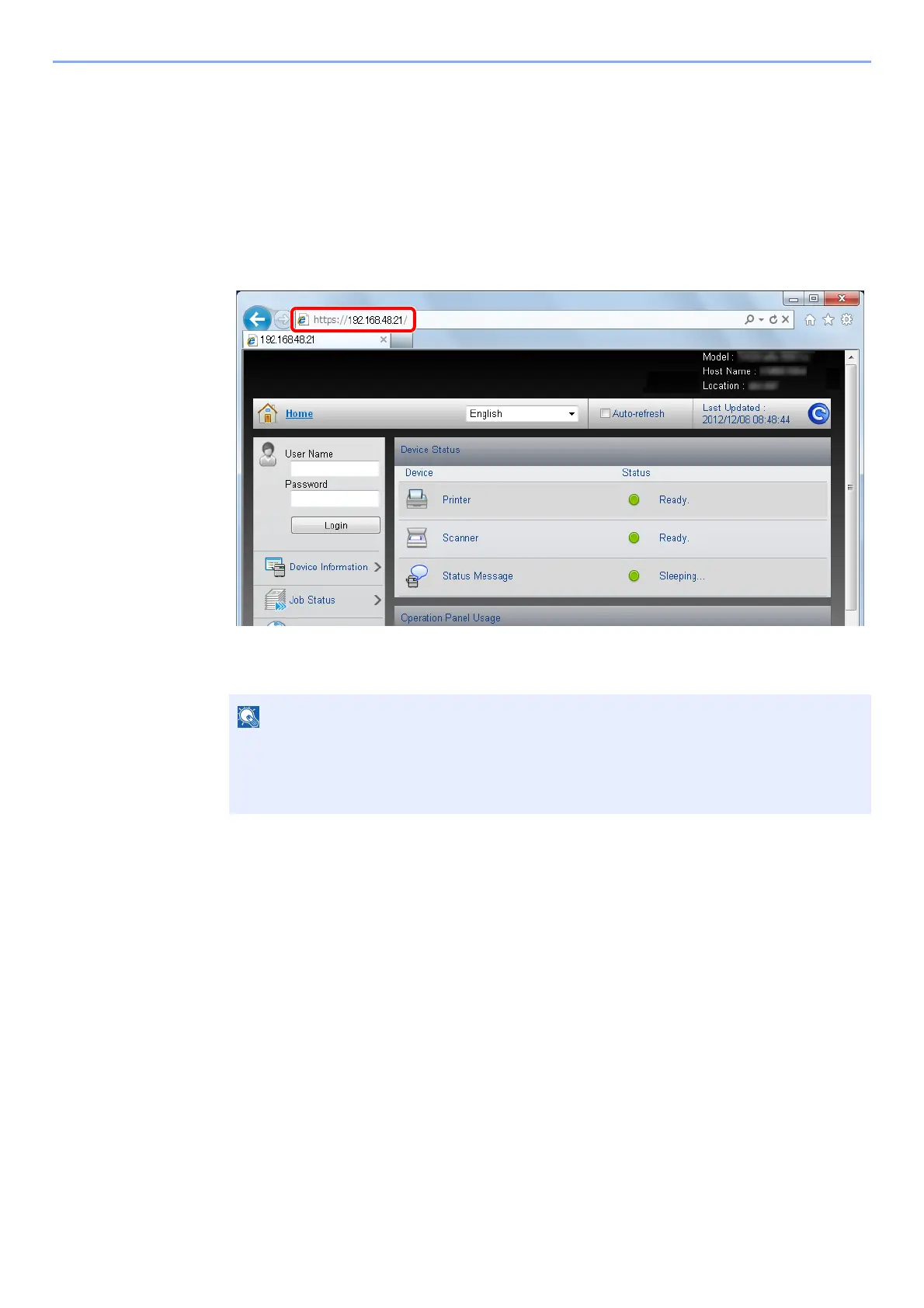 2 In the address or location bar, enter the machine's IP address or the host name.