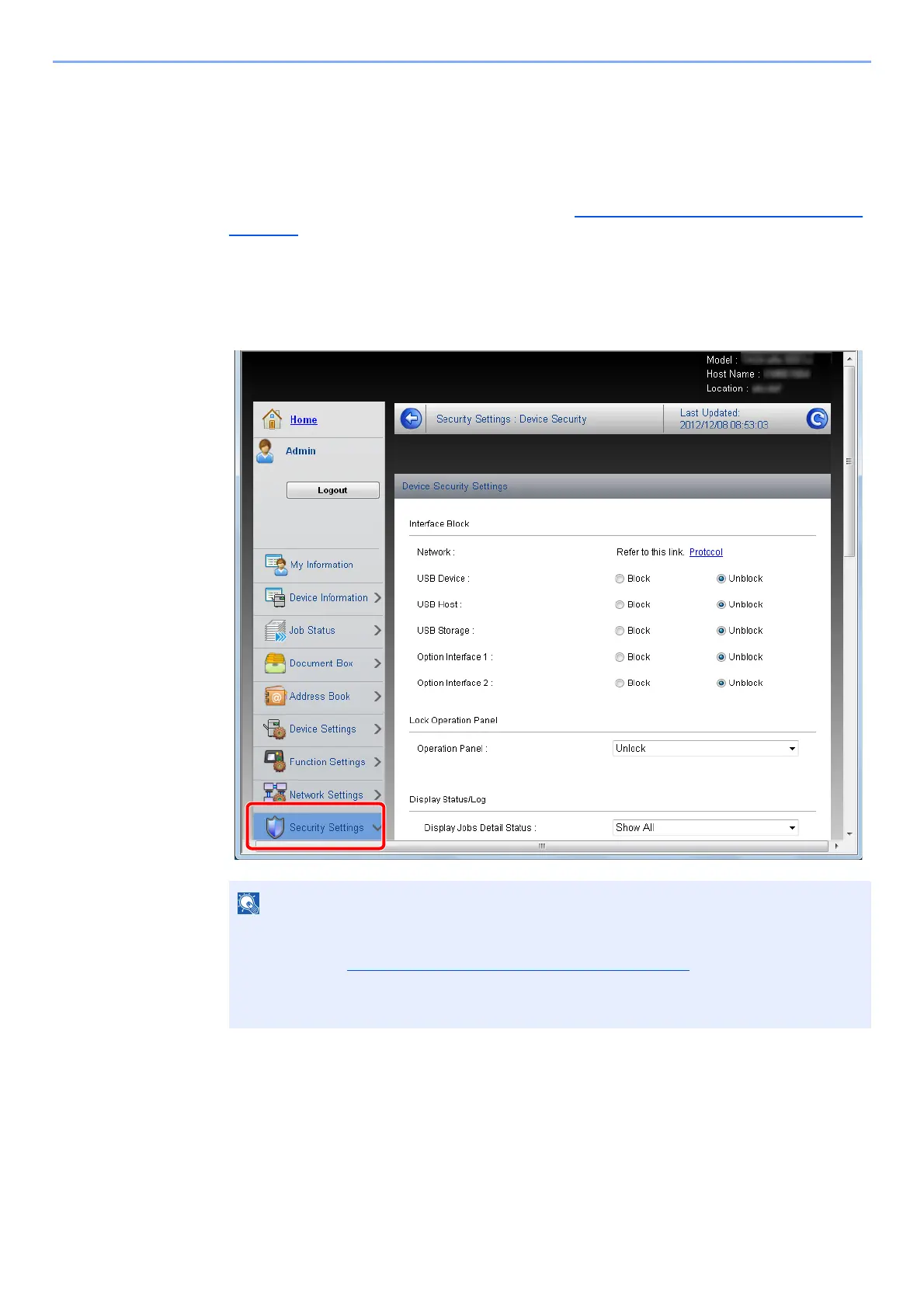 [Network Security] can also be configured from the machine's System Menu.