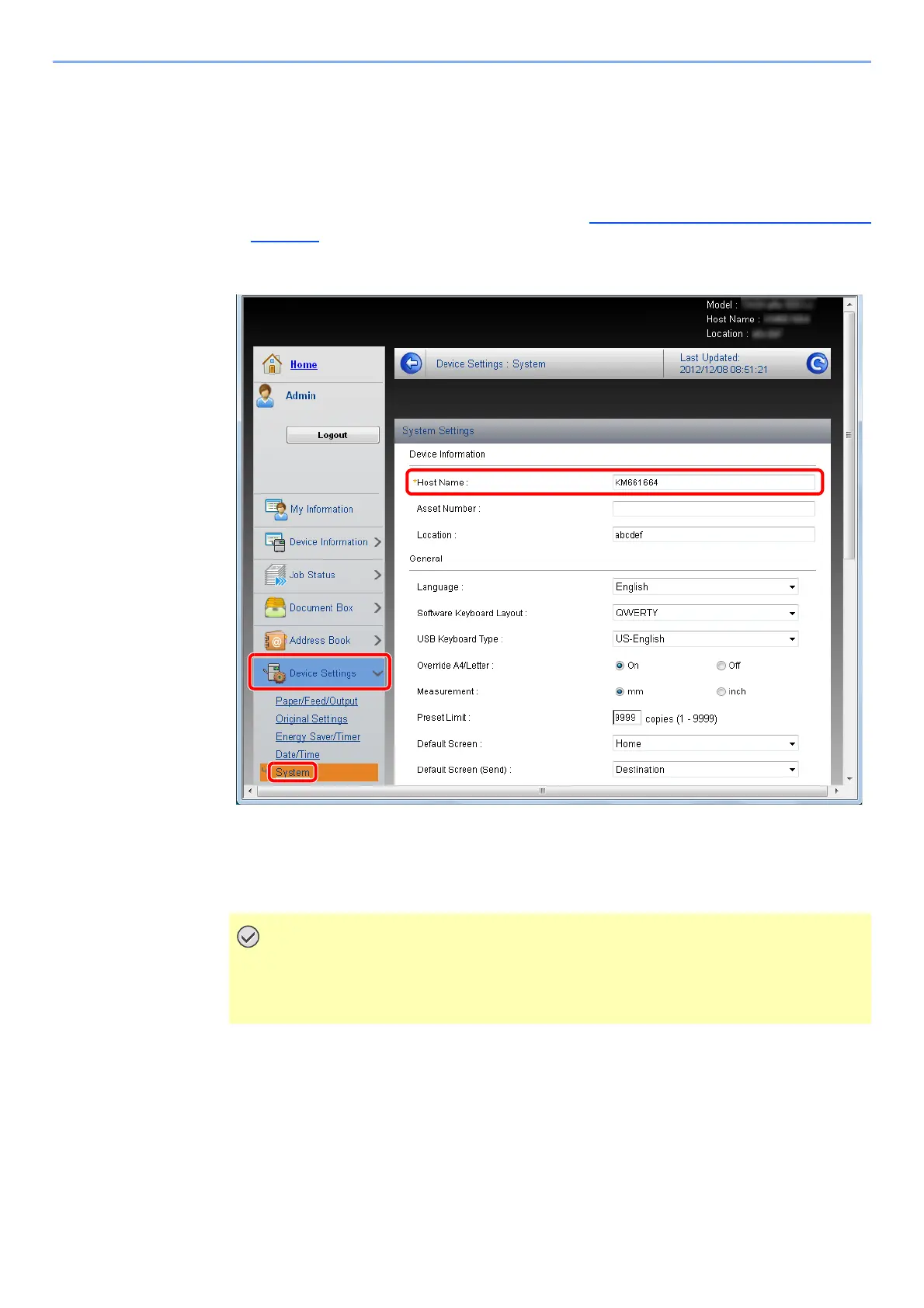 Under "Device Settings", enter the host name in "Host Name", and then click [Submit].