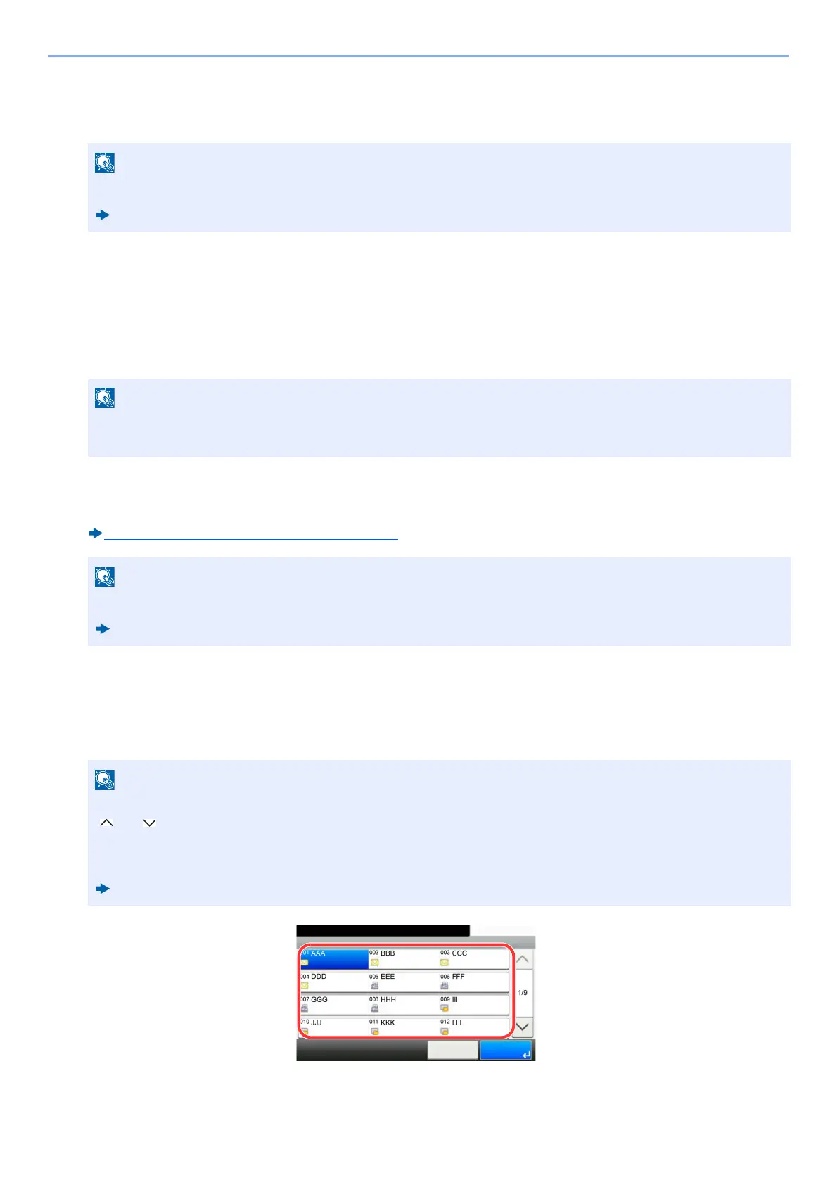 Als de snelkiestoetsen voor de gewenste bestemming niet zichtbaar is op het aanraakscherm, selecteer dan