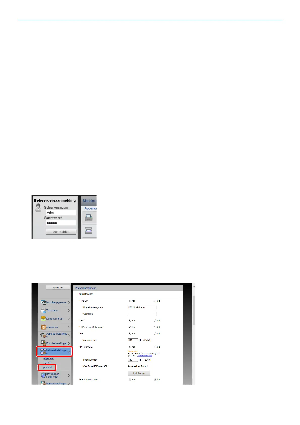 4 Kies vanaf de menu [Netwerkinstellingen] de optie [Protocol].