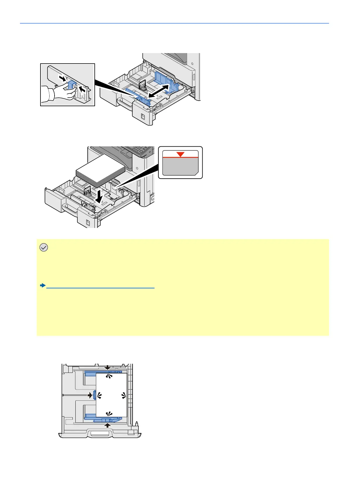 • Zorg ervoor dat het papier niet boven de niveauaanduiding uitkomt.