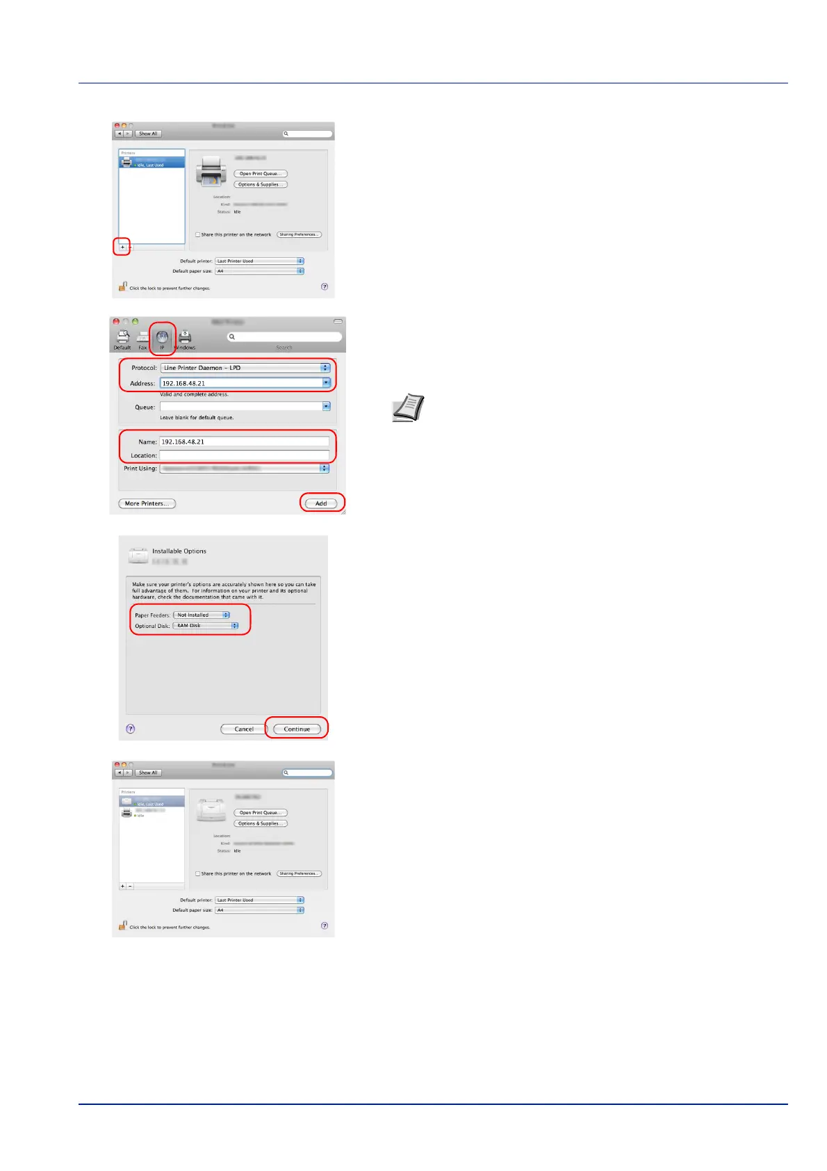 8 Click the plus symbol (+) to add the installed printer driver.