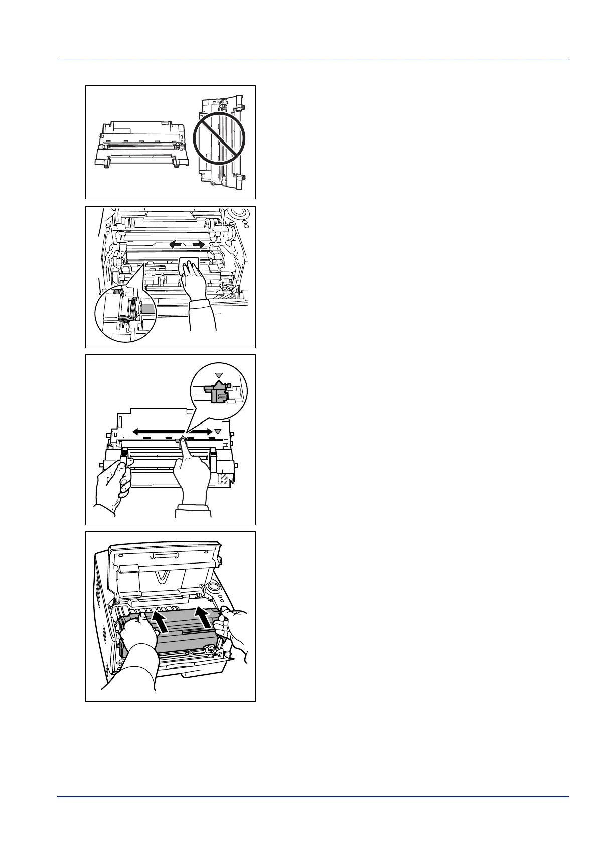 6 On the drum unit, slide the charger cleaner (green) back and forth 2