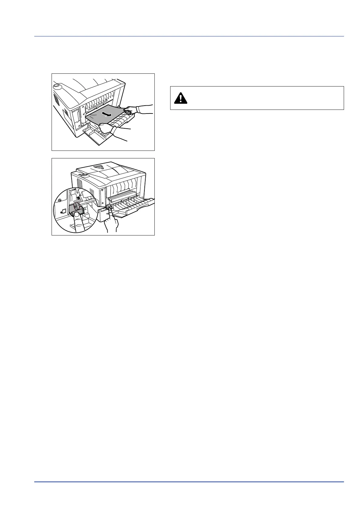 1 Open the rear cover and remove the jammed paper by pulling it out.