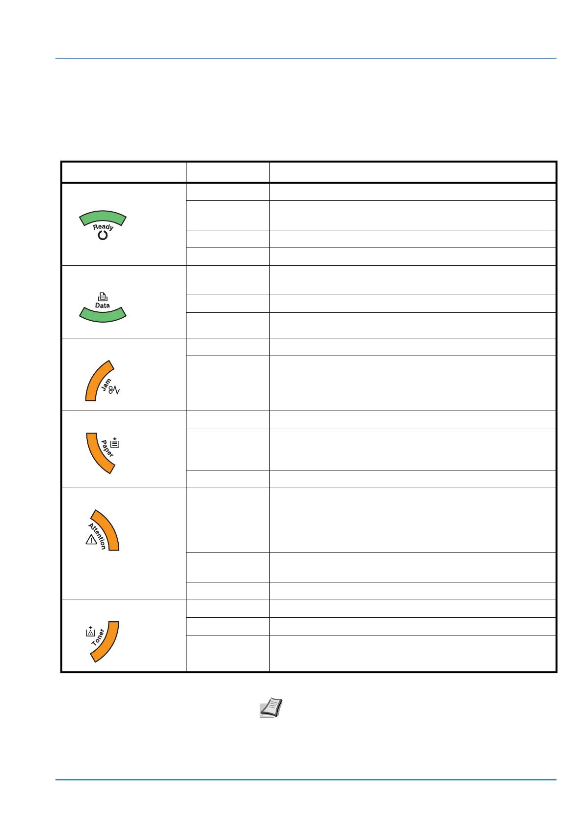 Een andere waarschuwingsstatus dan Jam, Toner, Paper, en