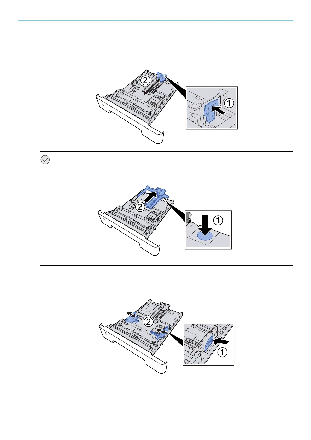 instelmechanisme voor de papierbreedte en schuif de geleiders in de vereiste papierformaatstand.