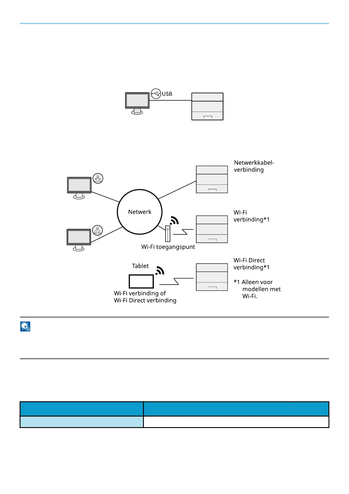 Bij gebruik van een netwerkkabel om verbinding te maken met het apparaat
