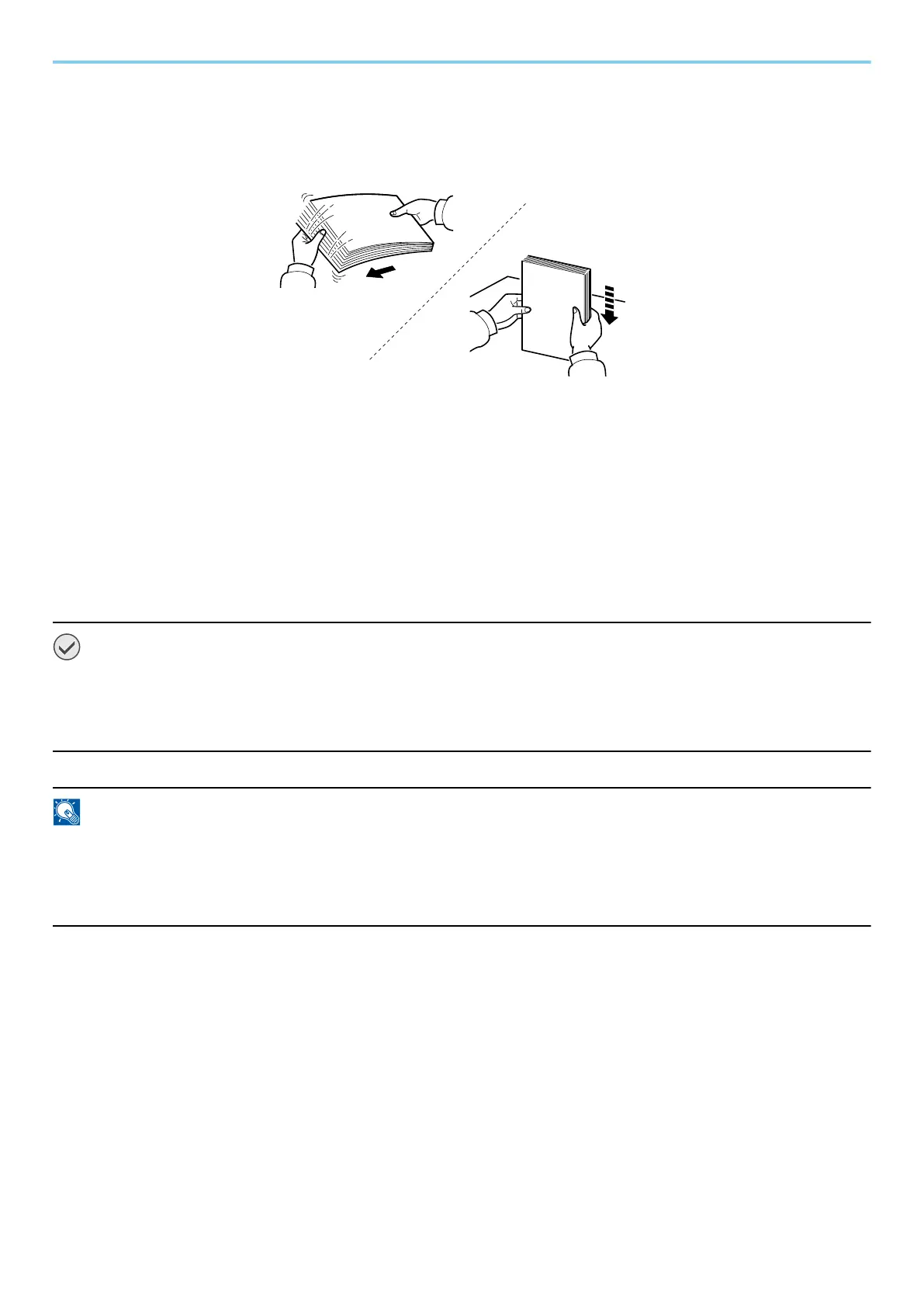 anneer u een nieuw pak papier opent, waaiert u het papier eerst los om de vellen uit elkaar te halen. Volg
