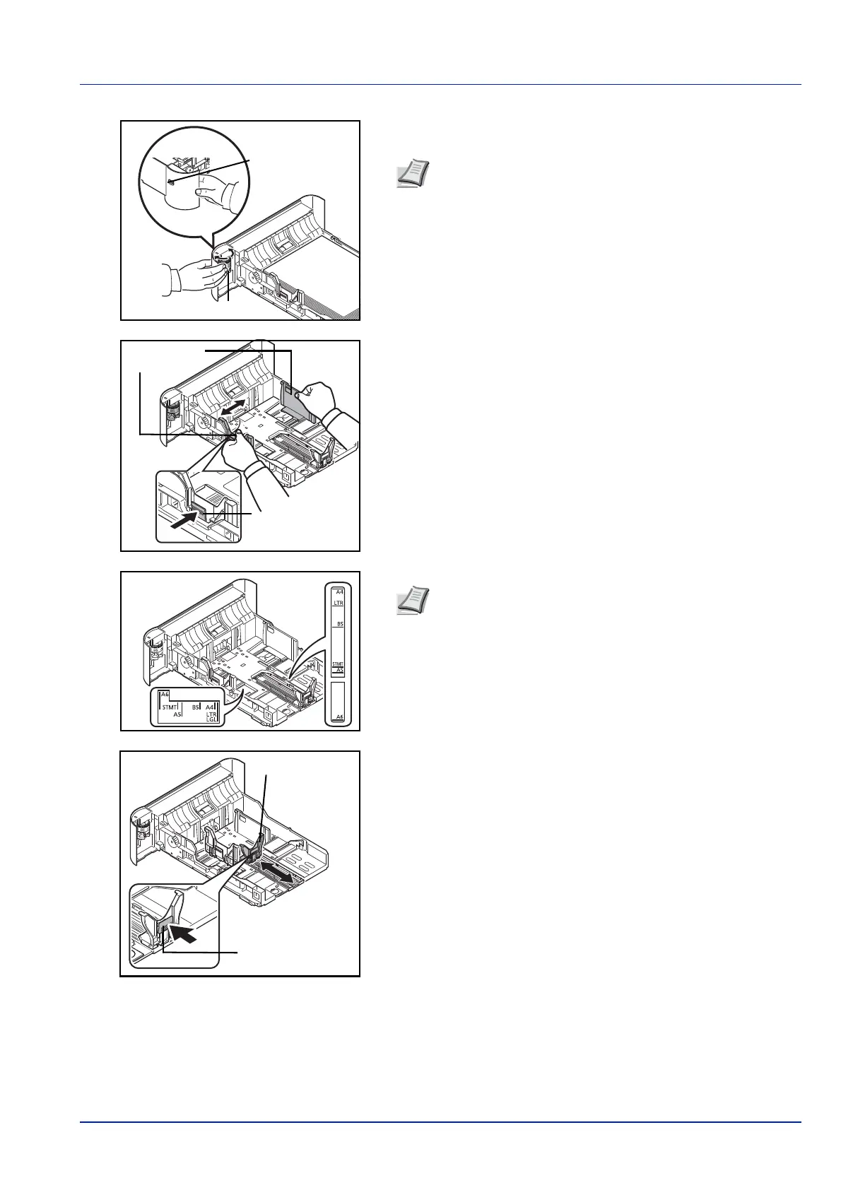 papiercassette in. Druk op de tab voor breedteaanpassing en schuif