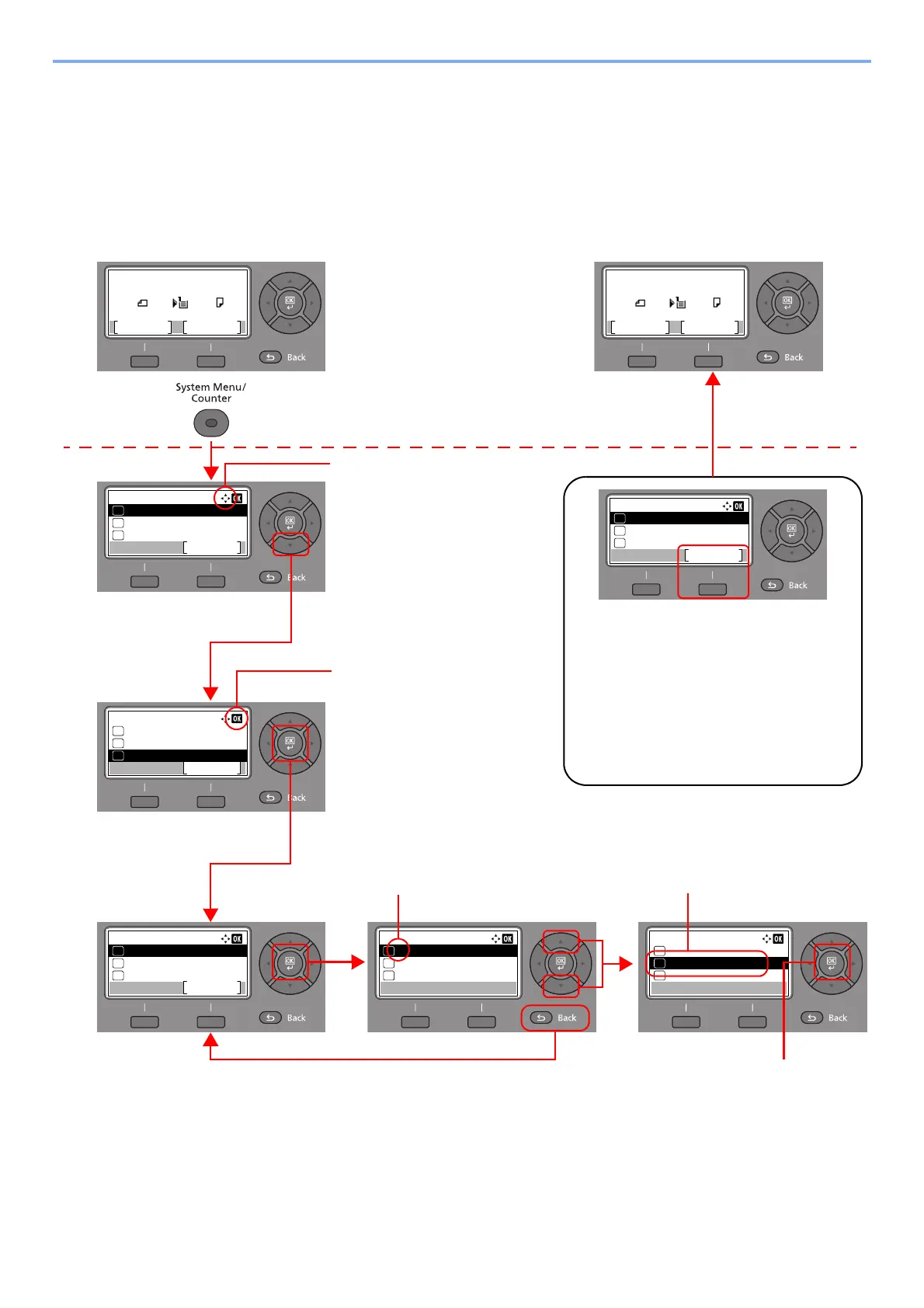 Press the [System Menu/Counter] key or [Function Menu] key to display the setting menus. Press the [▲] key, [▼]