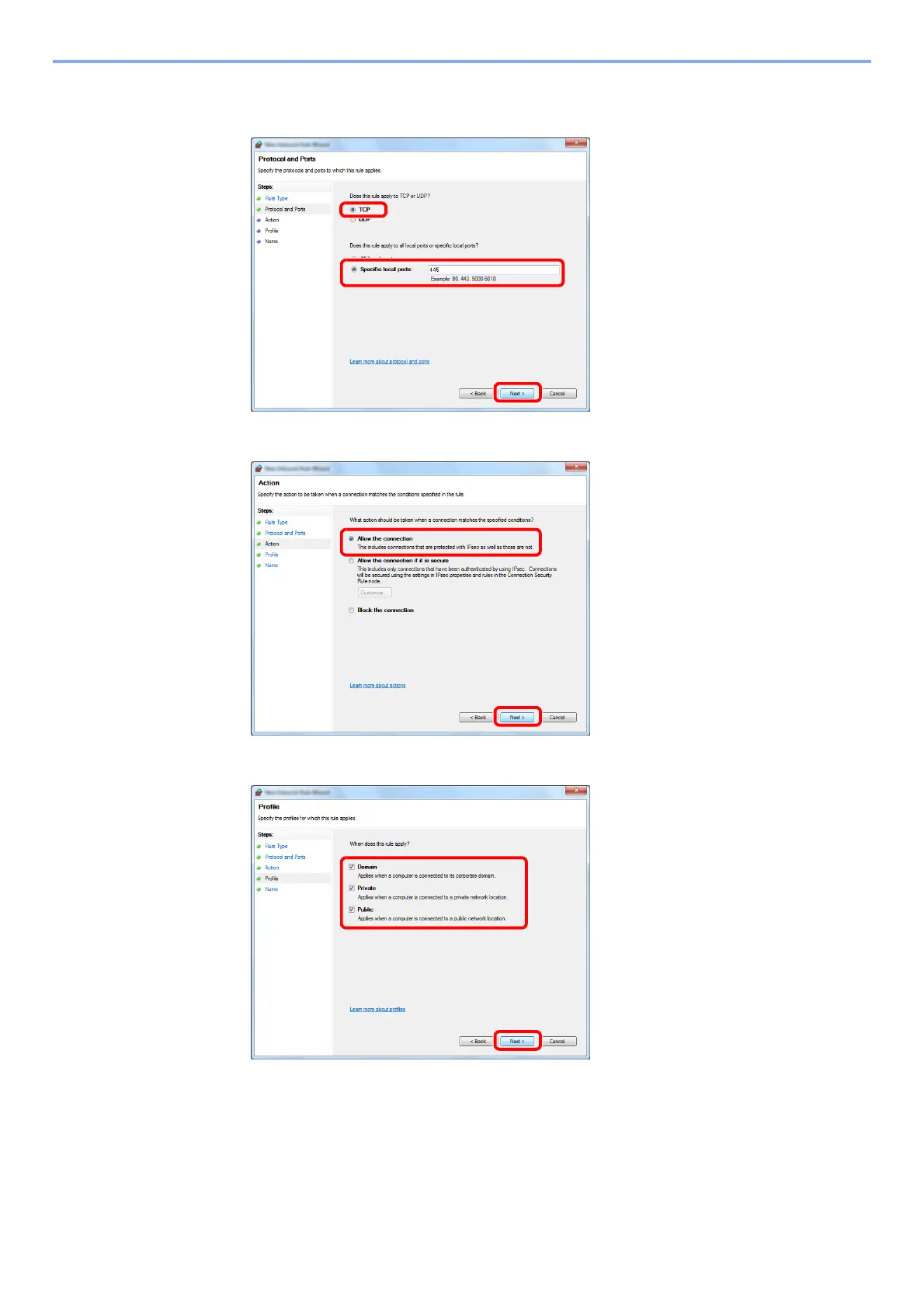 6 Select [TCP] as the port to apply the rule to. Then select [Specific local ports] and enter