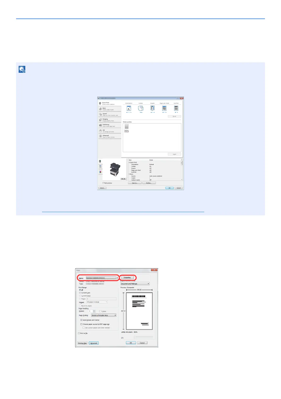 • In some environments, the current settings are displayed at the bottom of the printer driver.