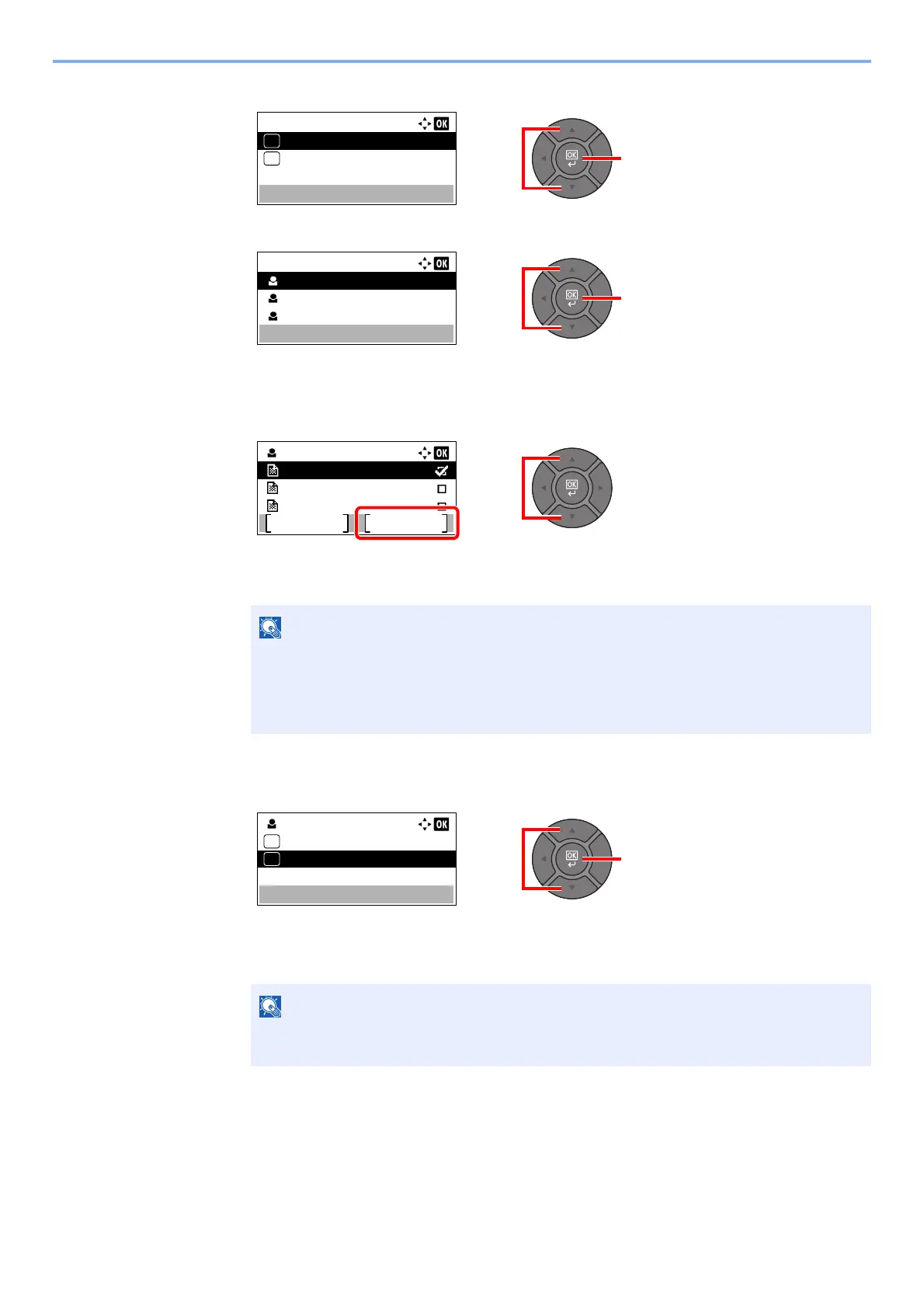 4 Press the [▲] or [▼] key to select the creator of the document, and press the [OK] key.