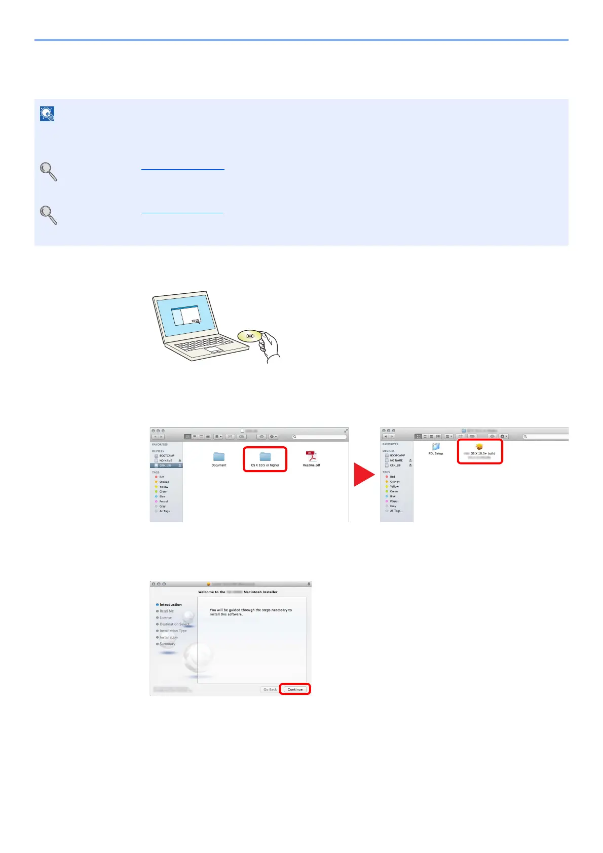 • Installation on MAC OS must be done by a user logged on with administrator privileges.