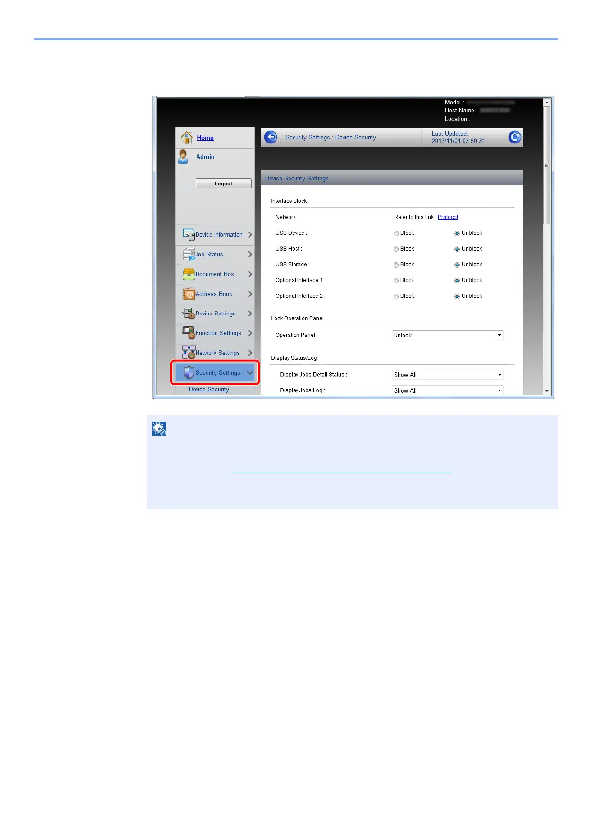 • For details on settings related to certificates, refer to the Embedded Web Server RX