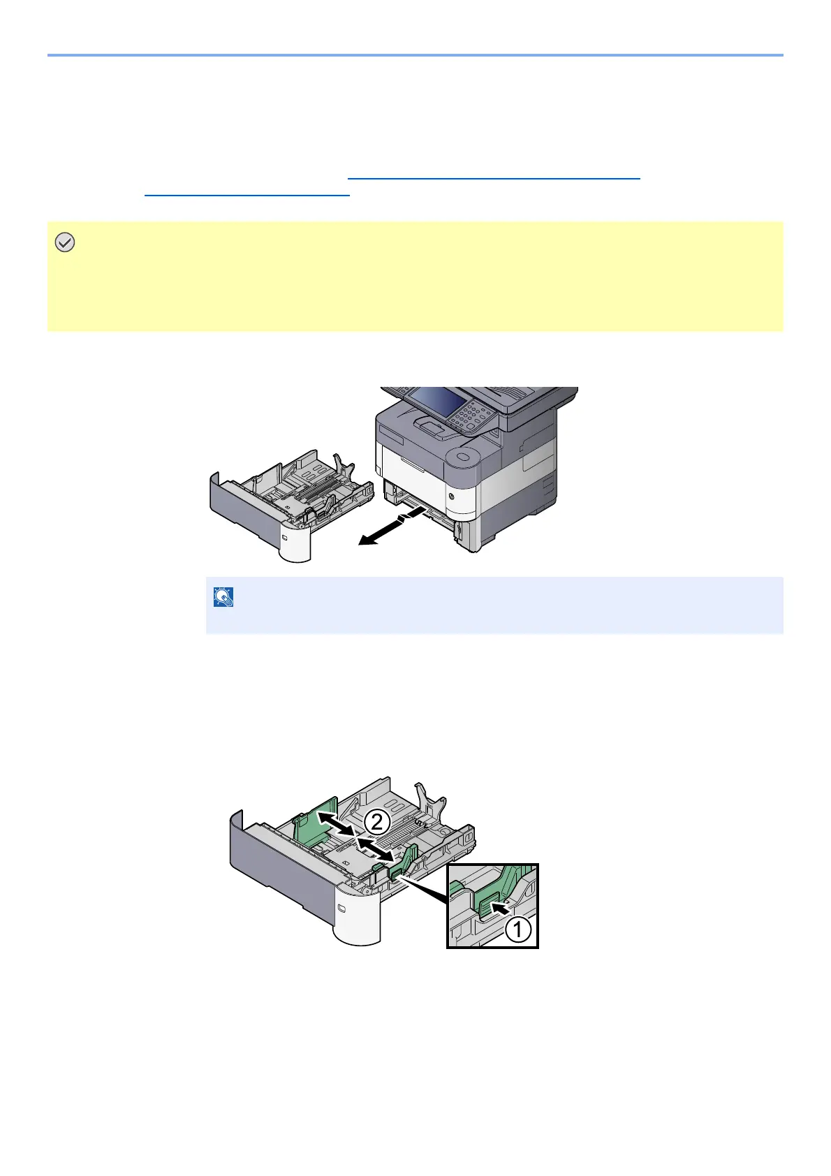 cassette. Press the paper width adjusting tab and slide the guides to the paper size