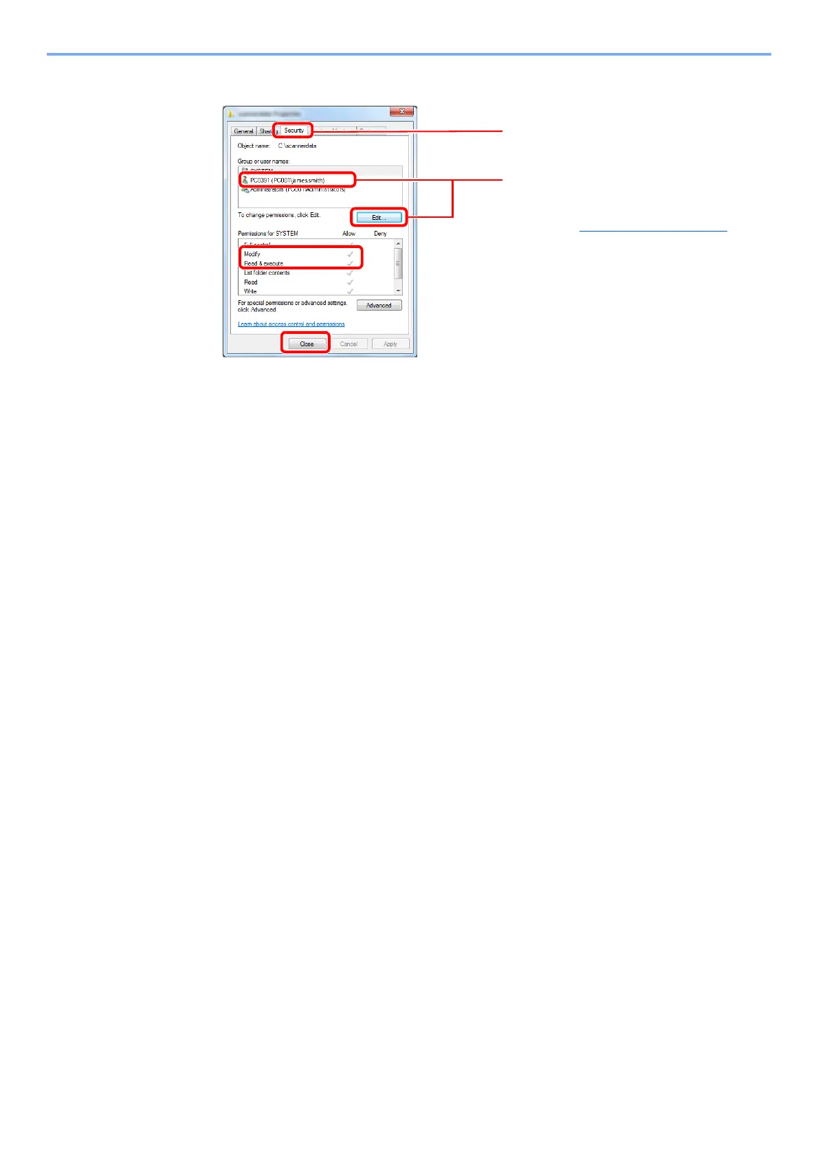 In Windows XP, make sure that checkmarks appear on [Allow] checkbox for the "Modify" and