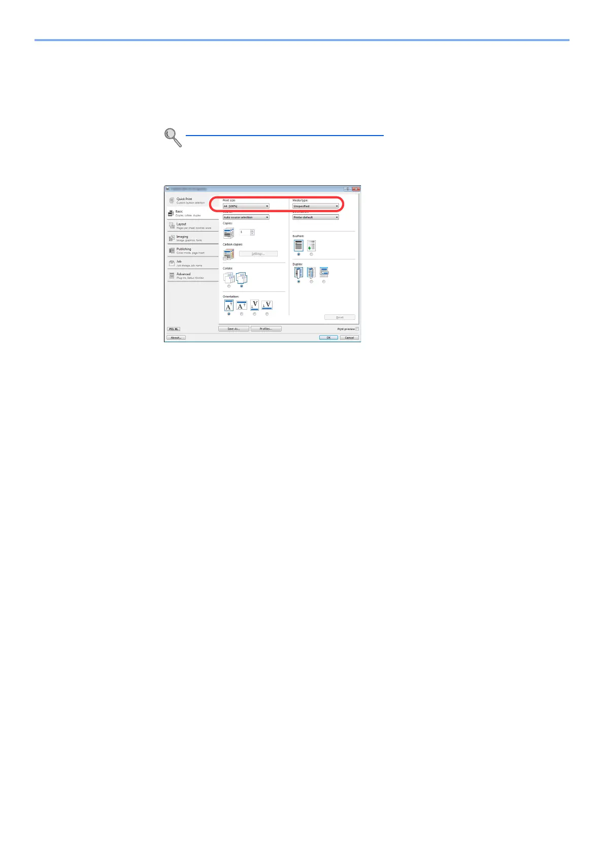 To print on the special paper such as thick paper or transparency, click "Media type" menu and select