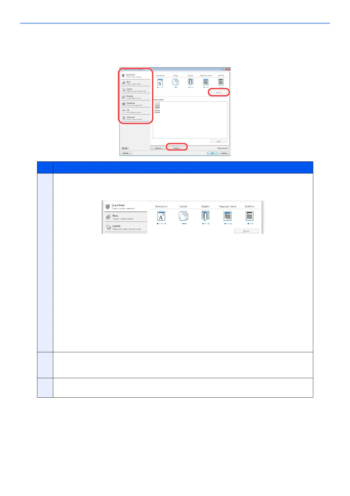 The printer driver print settings screen allows you to configure a variety of print-related settings. For more information,