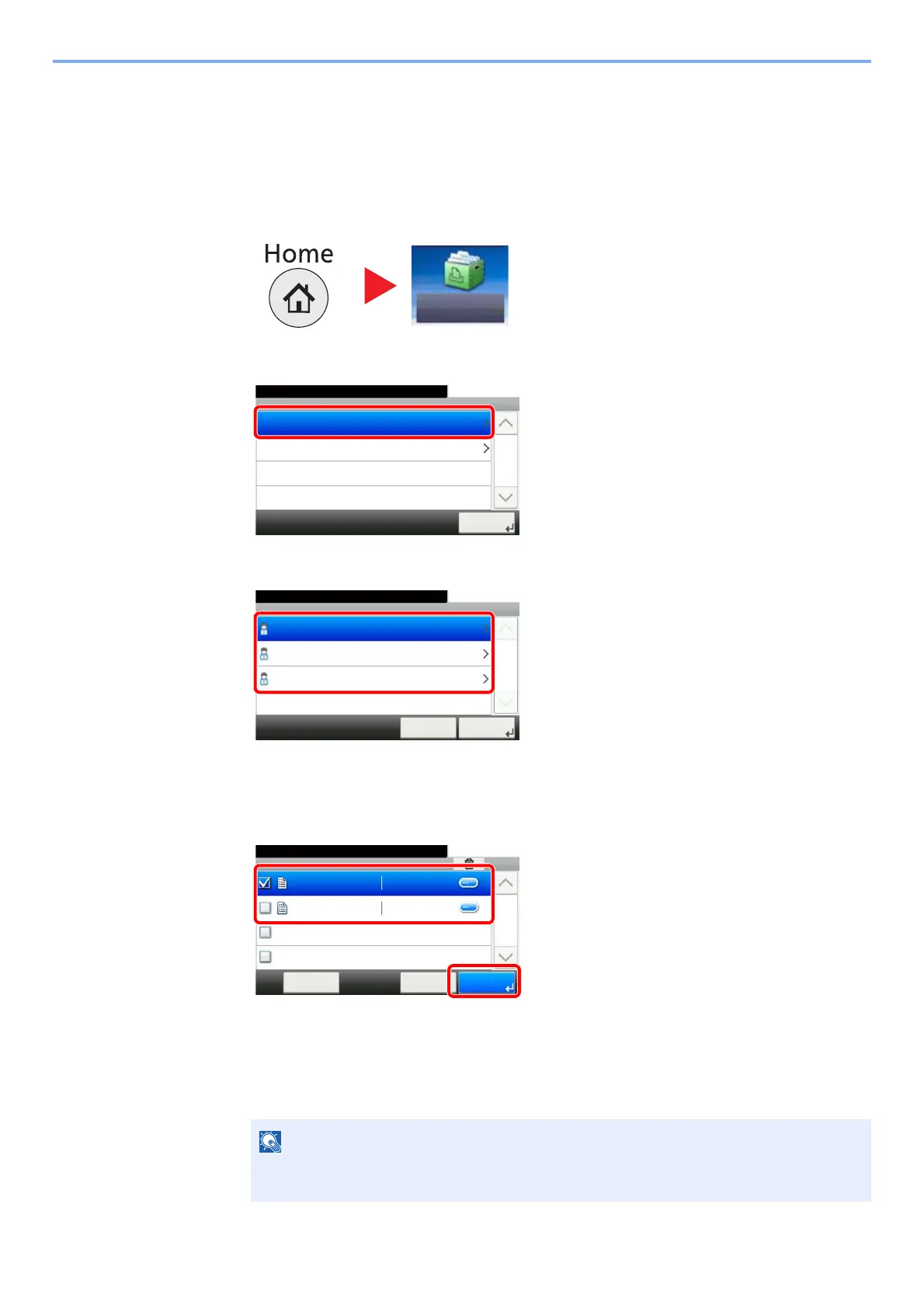 Print the documents stored in a Private Print box. The procedure is as follows.