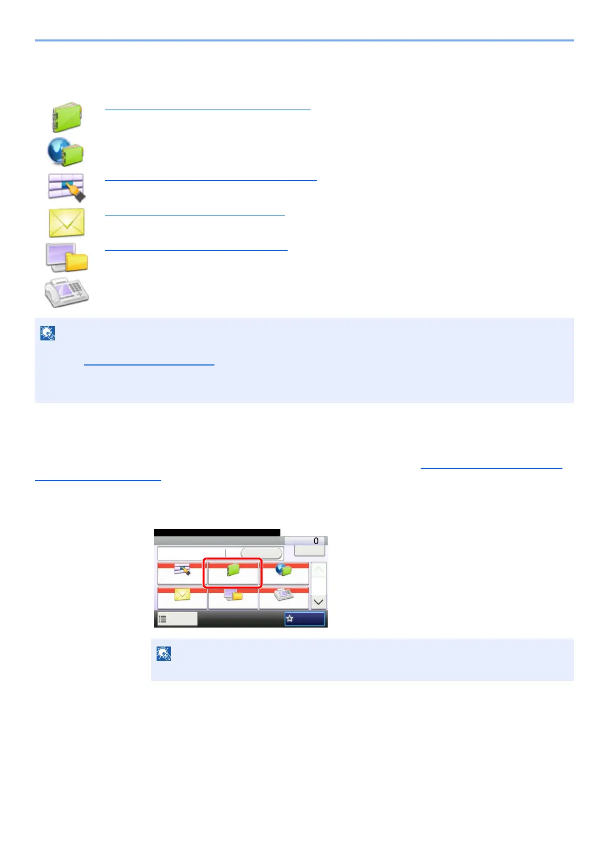 For more information about how to register destinations in the Address Book, refer to Registering Destinations in the