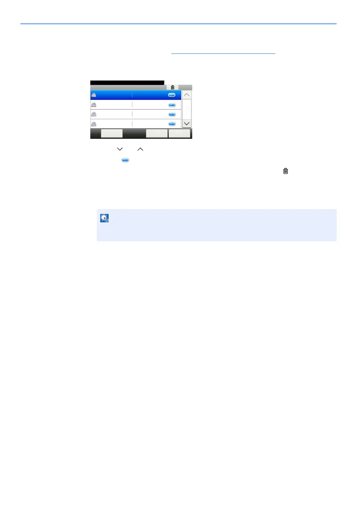 To delete the destination, select the destination you want to delete and press [ ]. Press [Yes] in the