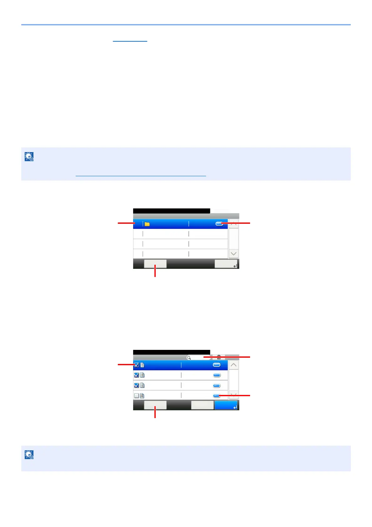 Press [Menu] to print, move, check the details of or delete documents, to select all or