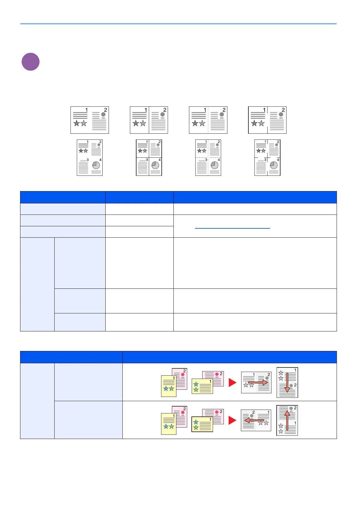 Combines 2 or 4 original sheets into 1 printed page. You can select the page layout and the type of boundary lines