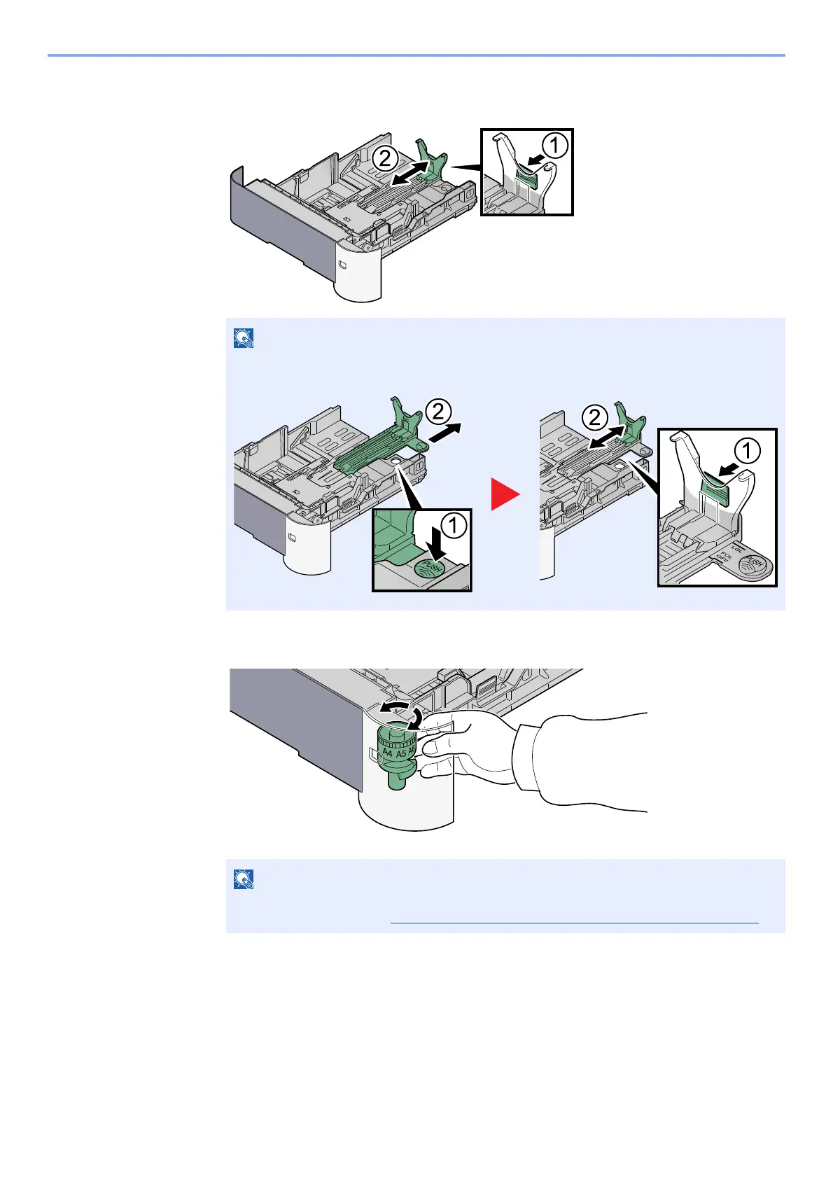 2 Adjust the paper length guide to the paper size required. Press the paper length adjusting