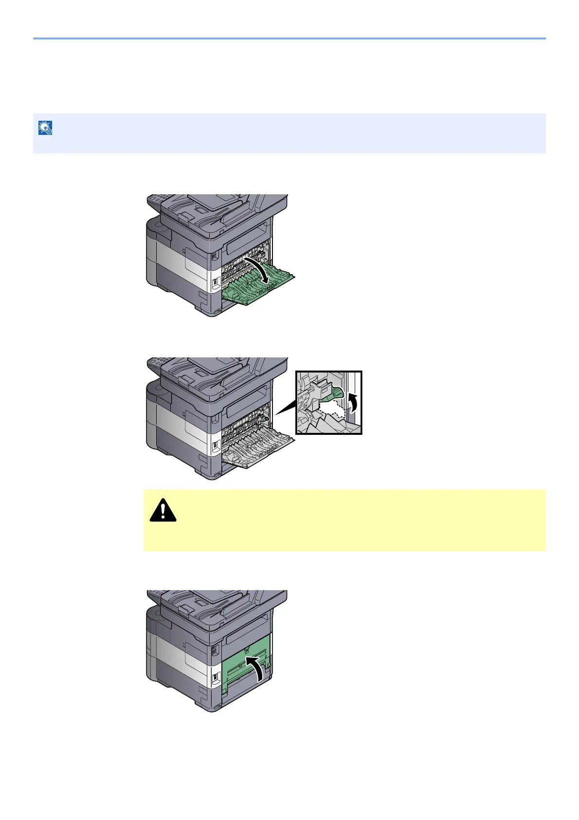 The fuser unit inside the machine is hot. Do not touch it with your hands as it may