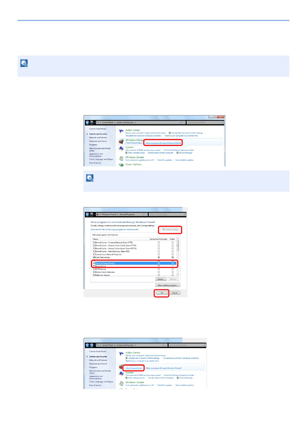 1 From [Start] button on the Windows, select [Control Panel], [System and Security], and