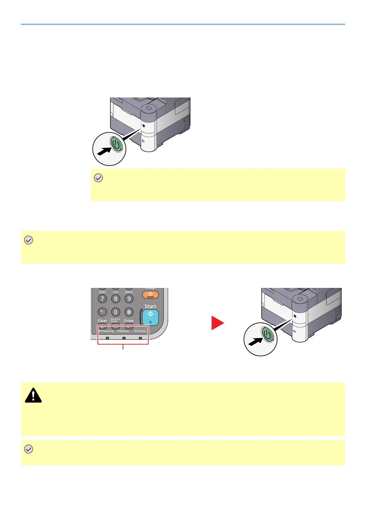 When the [Processing] indicator or [Memory] indicator is lit up or blinked, the machine is operating. Turning