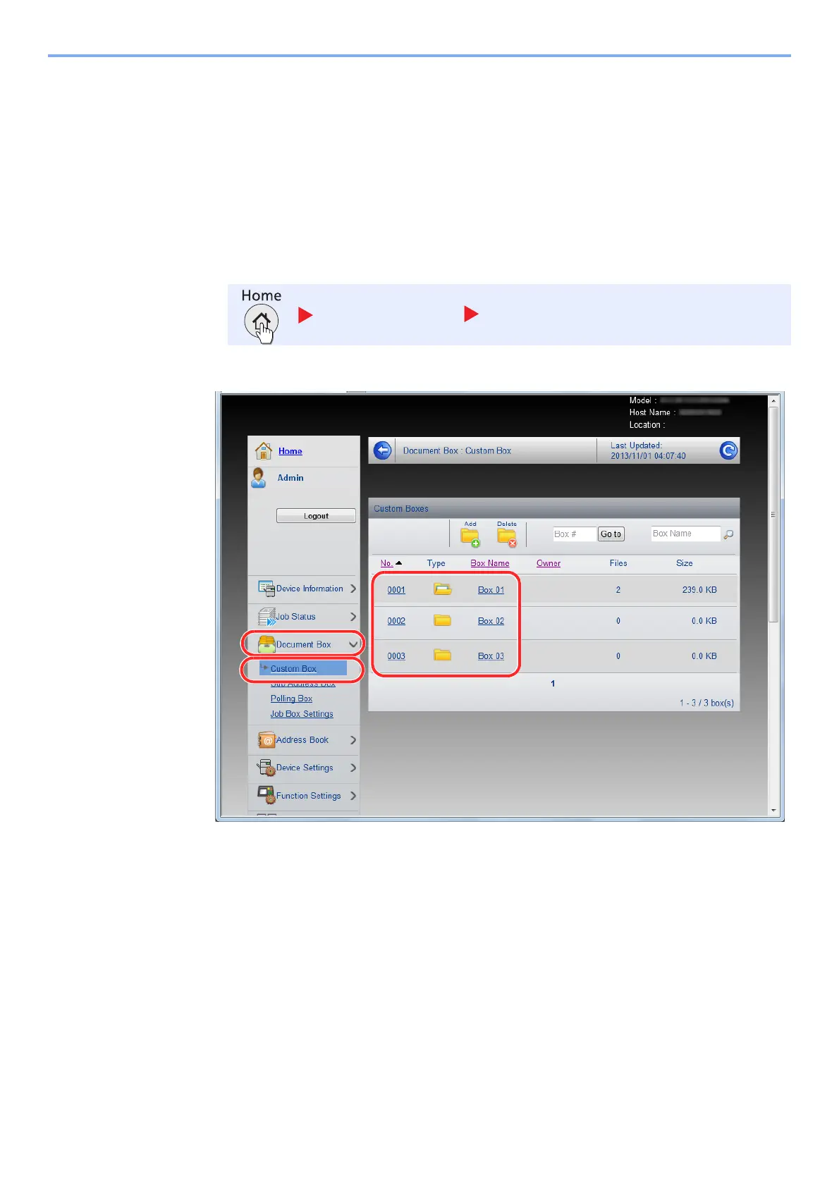 A document stored in a Custom Box can be printed from Embedded Web Server RX.