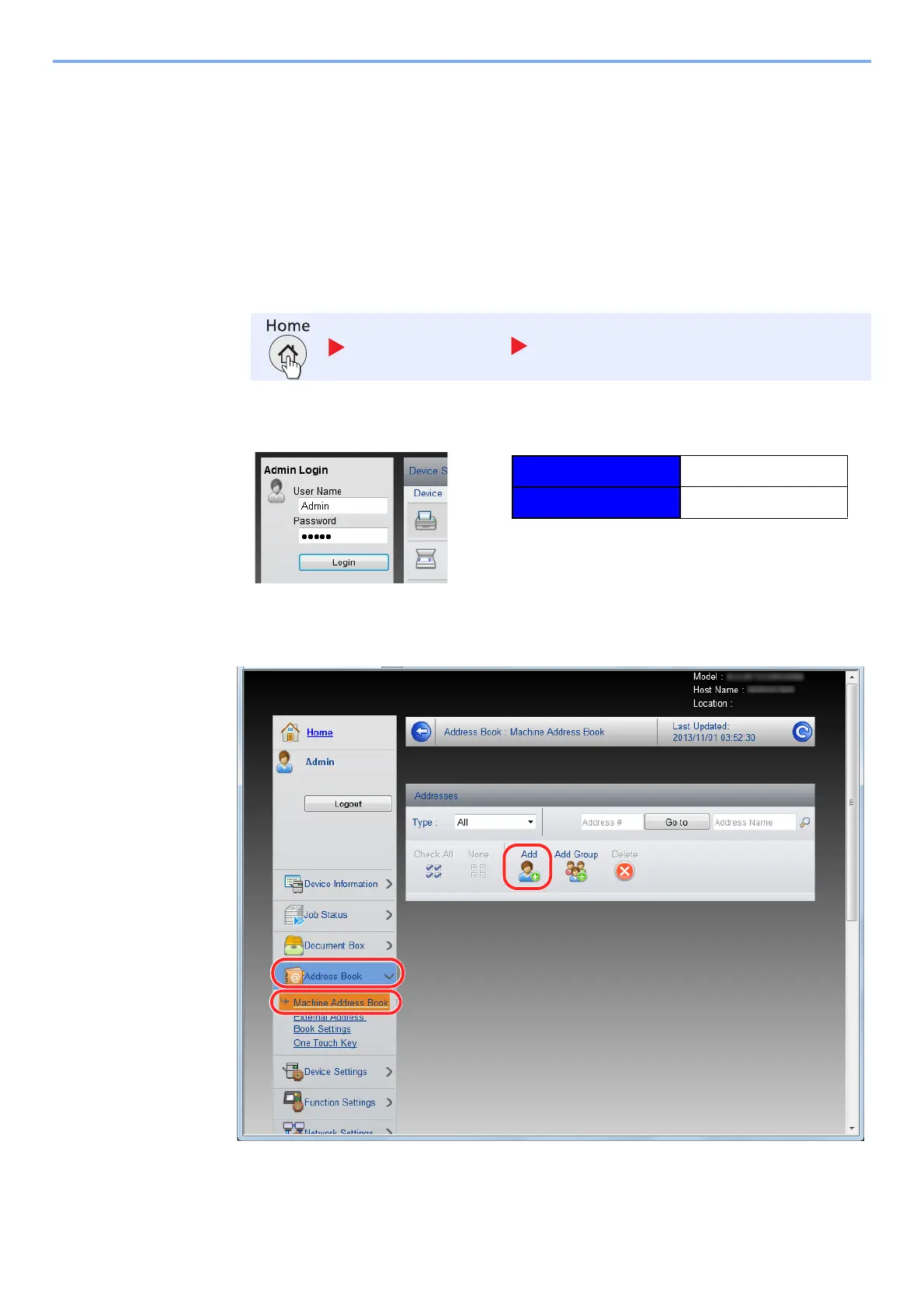4 From the [Address Book] menu, click [Machine Address Book].