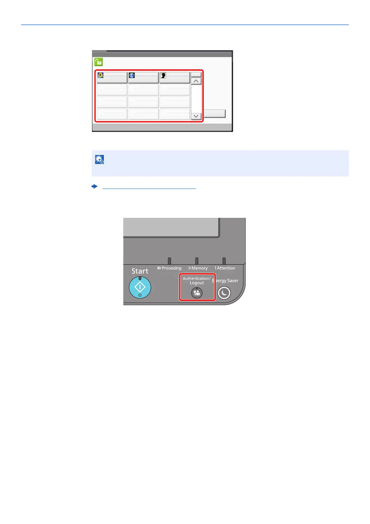 To logout from the machine, select the [Authentication/Logout] key to return to the login user