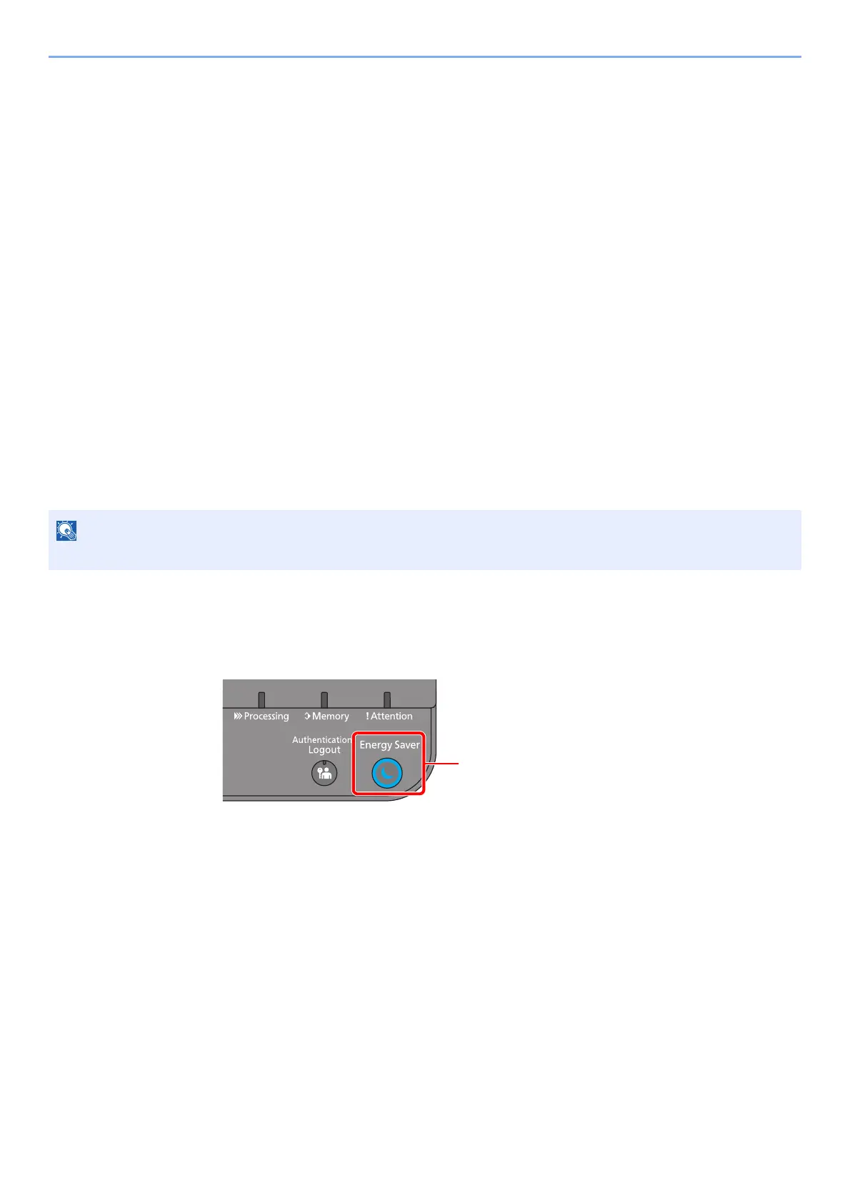 To enter Sleep, select the [Energy Saver] key. Touch panel and all indicators on the operation panel will go out to save