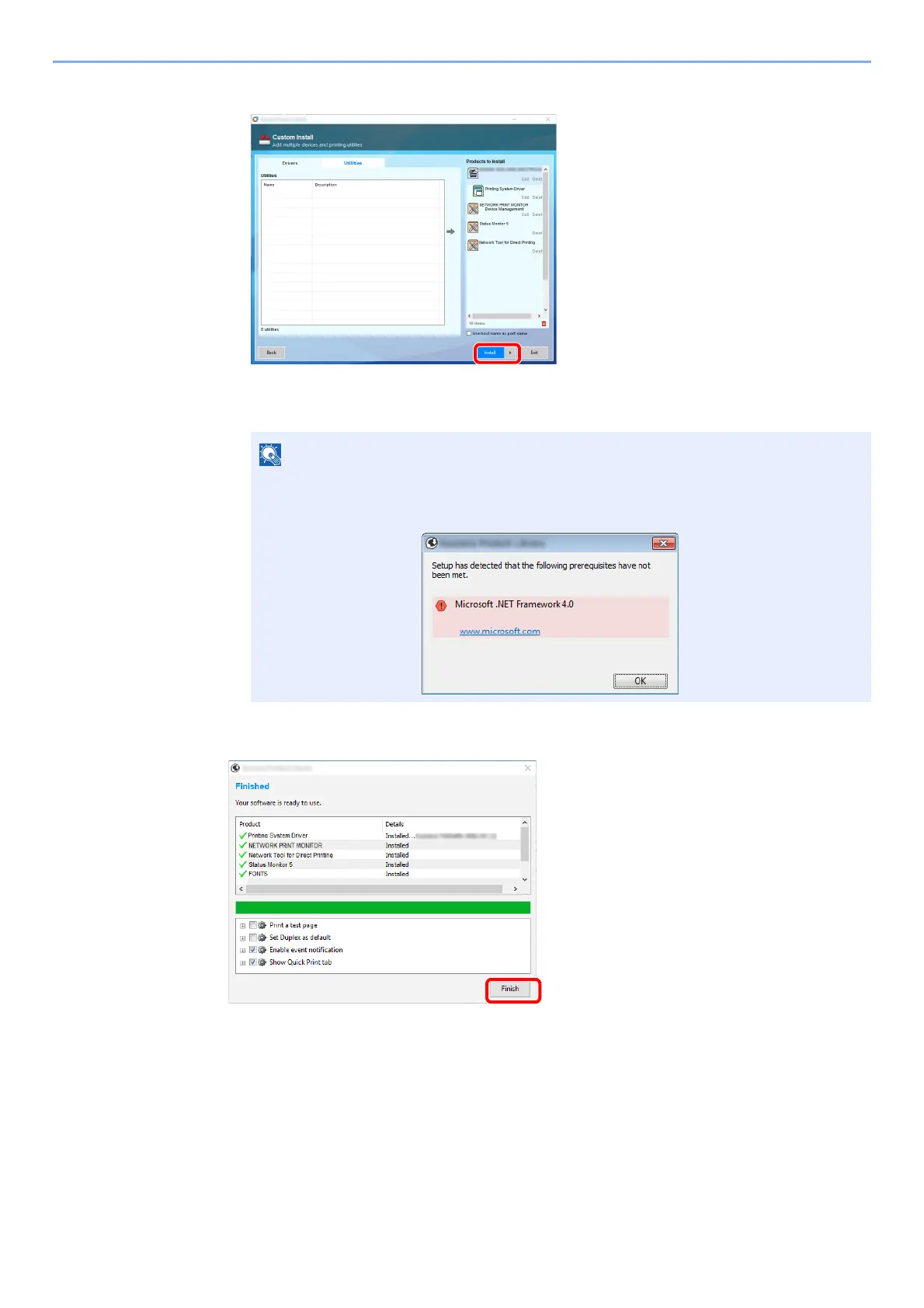 To install Status Monitor and NETWORK PRINT MONITOR on Windows versions